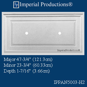 The IPPAN5003H2 is a Modern rectangular medallion offering a simple elegant design that makes it perfect for any modern decor. The medallion provides an inner panel for a large chandelier canopy of up to 12 Inches. The medallion is 47-3/4" x 23-3/4" x 1-7/16" deep. It is available in ArchPolymerTM (a synthetic plaster). For Vaulted ceilings specify Flexible ResinMold®. For Commercial and Public Buildings specify Fire Rated ArchPolymerTM or GRG-NeoPlasterTM (real plaster).