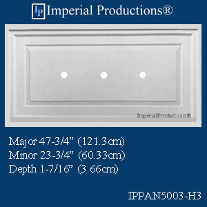The IPPAN5003H3 is a Modern rectangular medallion offering a simple elegant design that makes it perfect for any modern decor. The medallion provides an inner panel for a large chandelier canopy of up to 12 Inches. The medallion is 47-3/4" x 23-3/4" x 1-7/16" deep. It is available in ArchPolymerTM (a synthetic plaster). For Vaulted ceilings specify Flexible ResinMold®. For Commercial and Public Buildings specify Fire Rated ArchPolymerTM or GRG-NeoPlasterTM (real plaster).