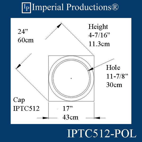 IPTB512-CAP-POL-PK2 Tuscan Capital - Hole 11-7/8" Pack of 2 Custom Order, Pack of 2